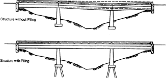 Foundations – transfer loads from abutments and piers into the ground (spread footing, pile foundation, caissons, etc.).